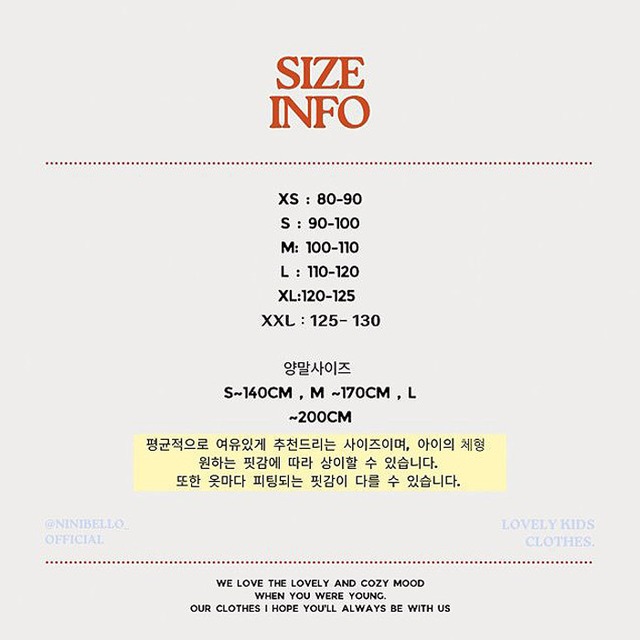 *こちらは予約での取寄商品です *商品のお届けはご購入から約3〜8週間後になります *即納商品と一緒にご注文すると予約商品の入荷を待ってからの発送になりますので、予約と即納は別々でご購入下さい (brand) ninibello (size) S,M (color) light / middle ✼••┈┈┈┈••✼••┈┈┈┈••✼ XS (1-2y) 80-90cm S (3-4y) 90-100cm M (4-5y) 100-110cm L (5-6y) 110-120cm XL (6-7y) 120-125cm XXL(7-8y) 125-130cm *メーカー提示サイズ ✼••┈┈┈┈••✼••┈┈┈┈••✼ *メーカー側の都合で ご用意できない場合は キャンセルとさせて頂きます *再生産などで生地の色味等が若干変わる場合がございます *お客様のご都合での キャンセル・変更は不可です #韓国子供服 #韓国こども服
